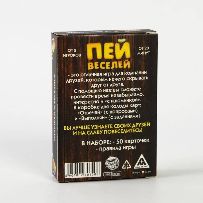Купить игра для компании "пей веселей" 50 карт от 180 руб. с доставкой до пункта выдачи в Юрьев-Польском. Интернет магазин ДекаМаркет. Оплата при получении.